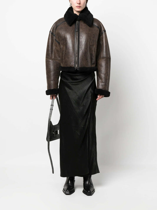 Shearling-trim leather jacket