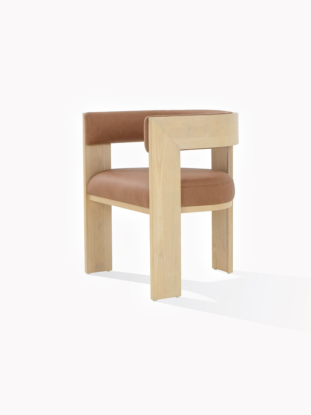 Perching on super-slender black metal legs, the Liber dining chair in rust velvet has a scooped back for comfort. Sold as a set of two, the chic, retro-styled design is also available in light grey and mauve green velvet with brass legs.